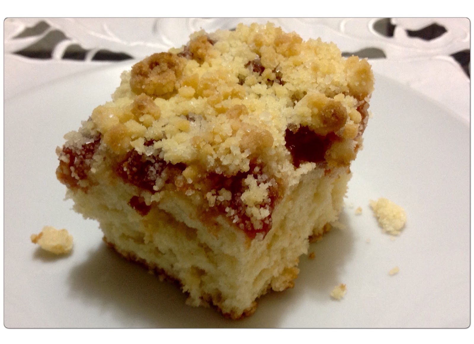 Depois da massa crescida, distribua a goiabada picada em cima da massa e por cima da goiabada coloque a farofa.